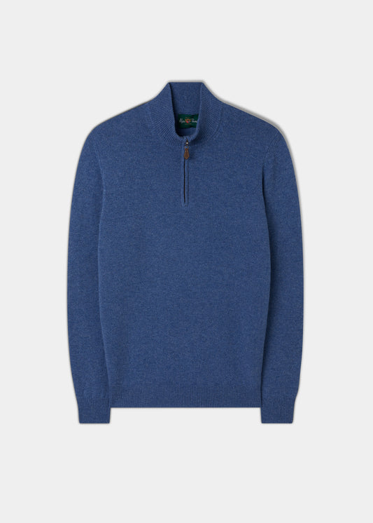 Men's Lambswool 1/4 Zip Jumper in Jeans - Regular Fit