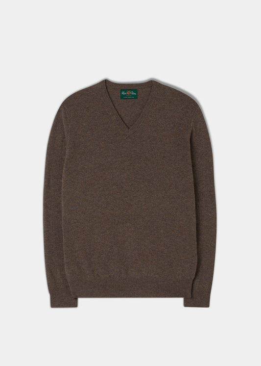 Men's Geelong Lambswool Vee Neck Jumper in Tobacco - Regular Fit